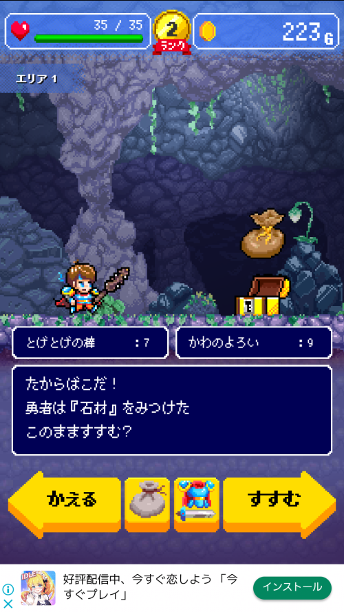 ダンジョンでは敵を倒したり宝箱を見つけて、
