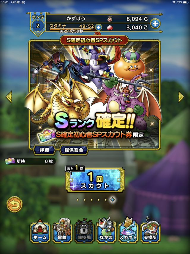 さっき、「S確定初心者SPスカウト券」なるものが