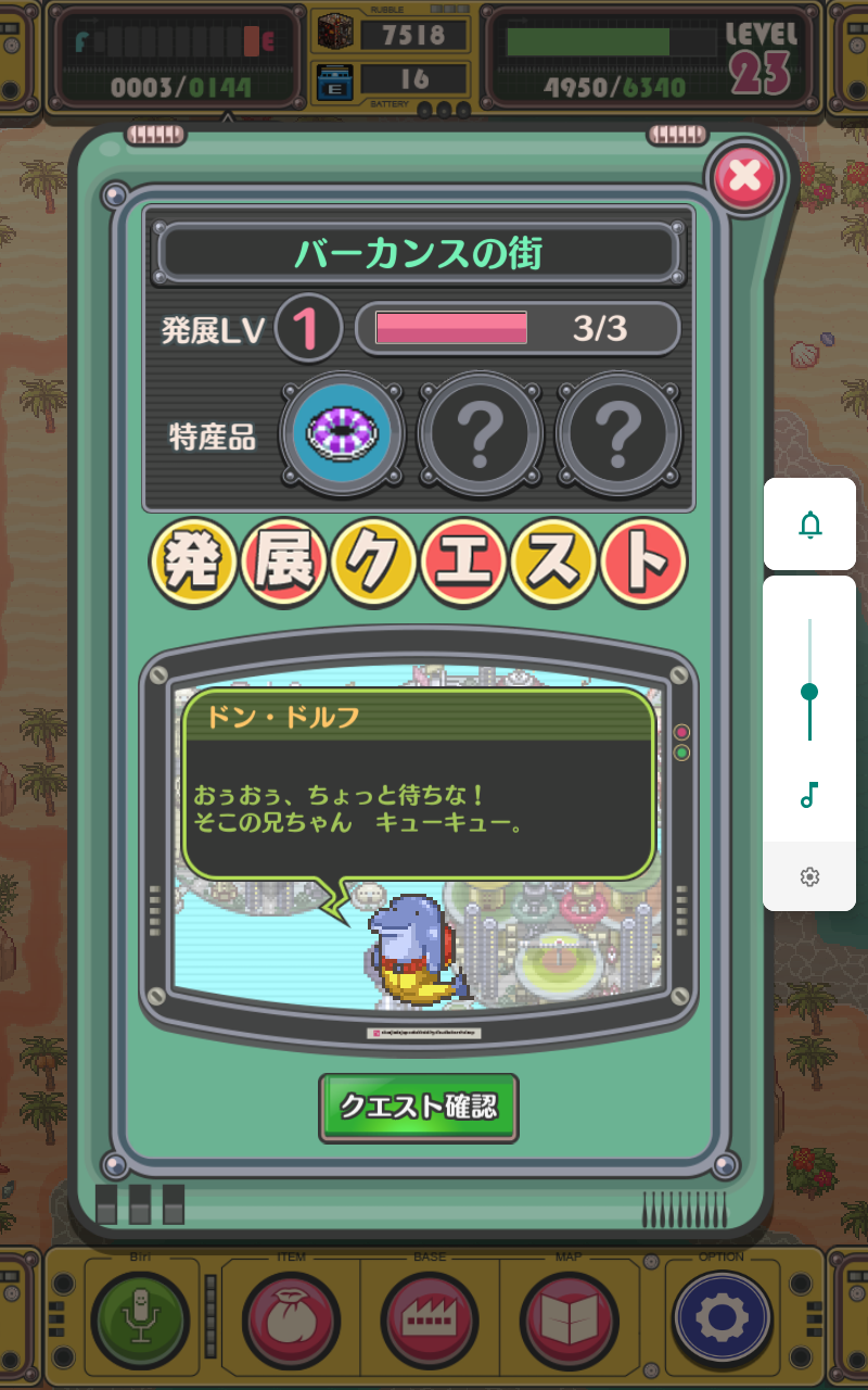 クエストをクリアすると、レベルが上がり
