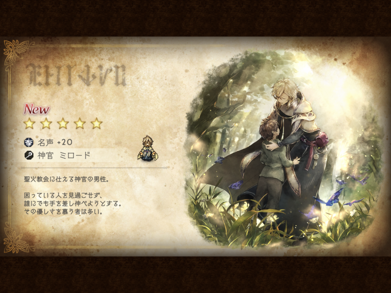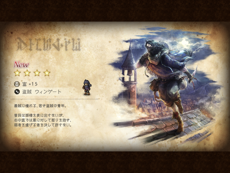ただし、「2.酒場での3連ガチャ」は固定の3人の旅人になります。