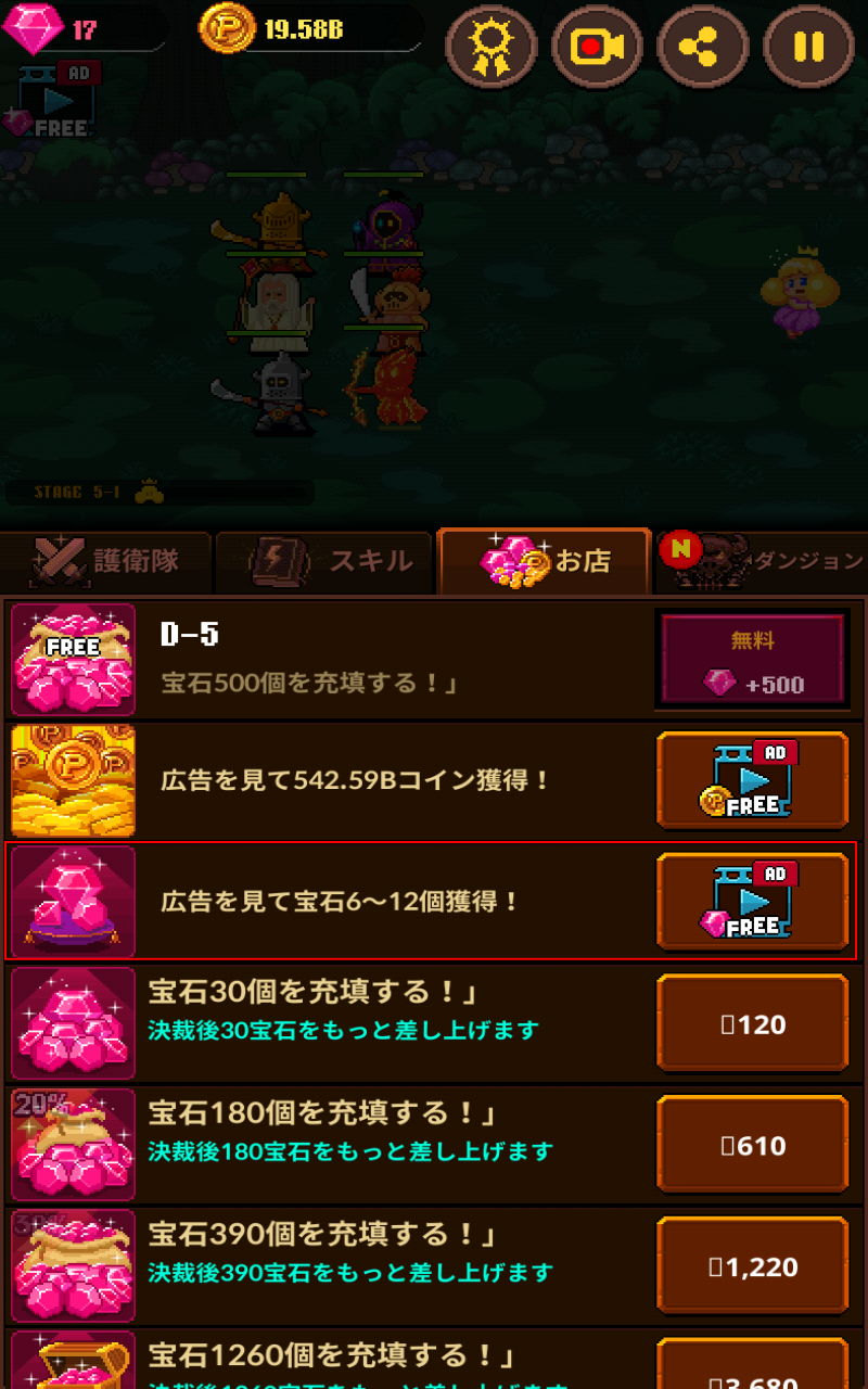 このゲームは、広告動画の視聴で