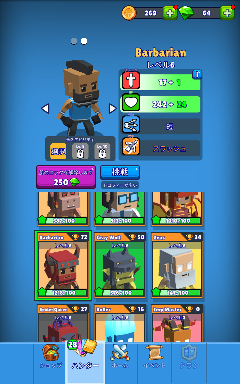 Barbarianさんの肌のアンロックは